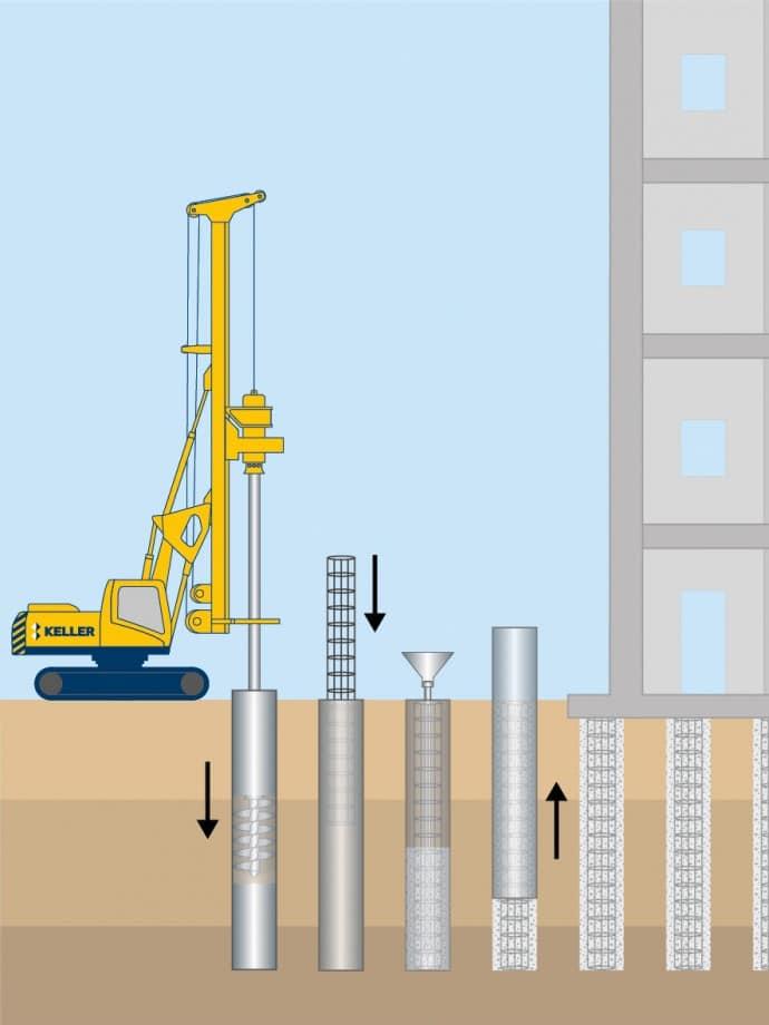 Ein weiterer Vorteil der Bohrpfahlgründung ist, dass sie in fast allen Bodenarten herstellbar ist und bei dieser wenig Erschütterungen entstehen.