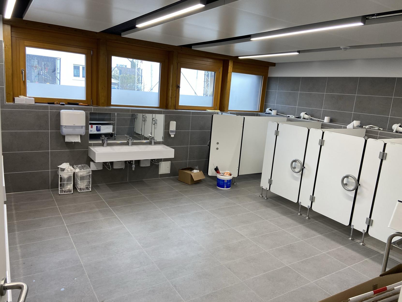 In den Spielräumen und Gruppenräumen sind teilweise ebenfalls kleine Klettergeräte installiert und manche Wände haben eine magnetische Farbe, wo die Kinder ihre Kunstwerke präsentieren können.